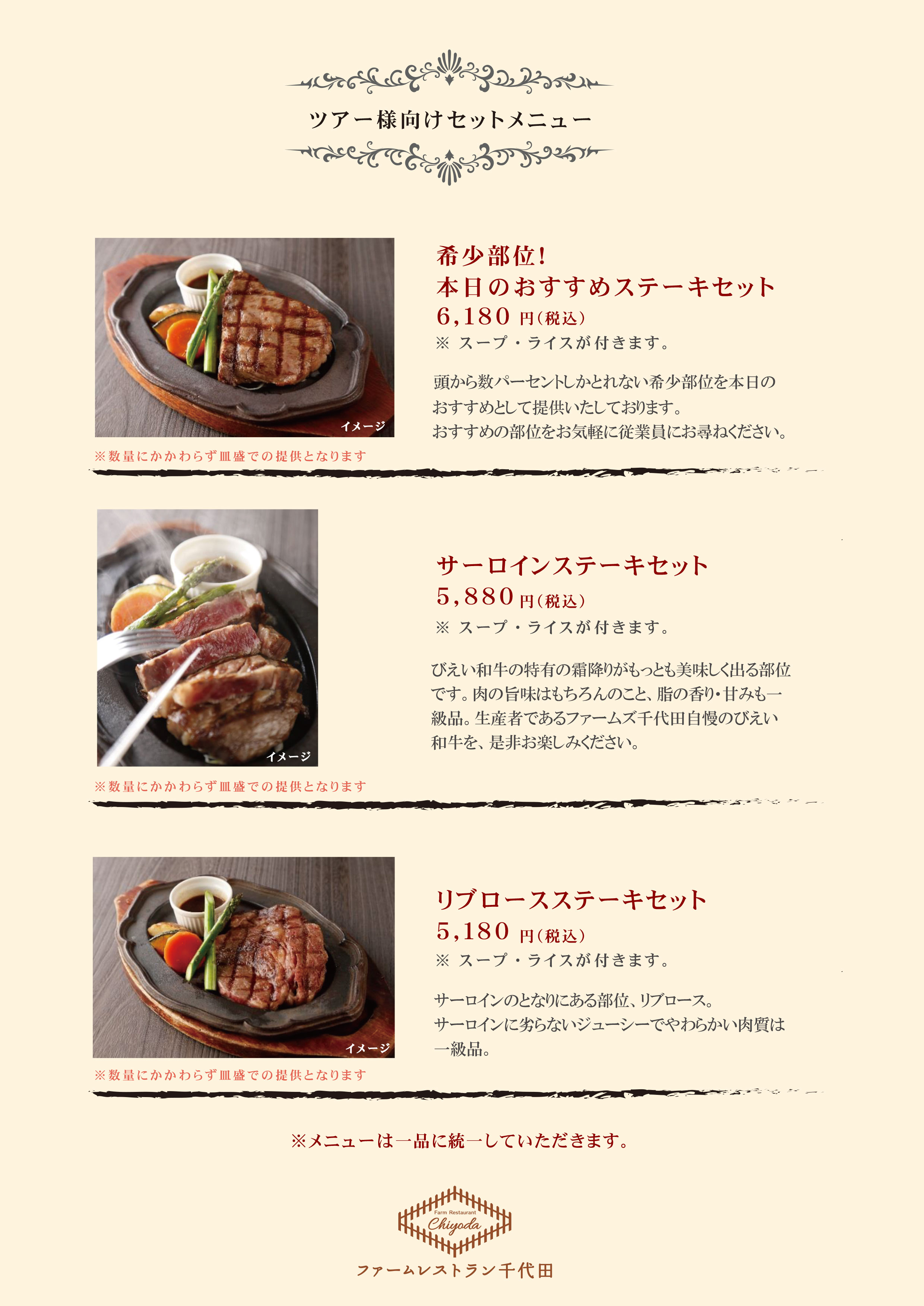 | ステーキセット全般 | ハンバーグセット | ビーフシチューセット | ビーフカレーセット | |