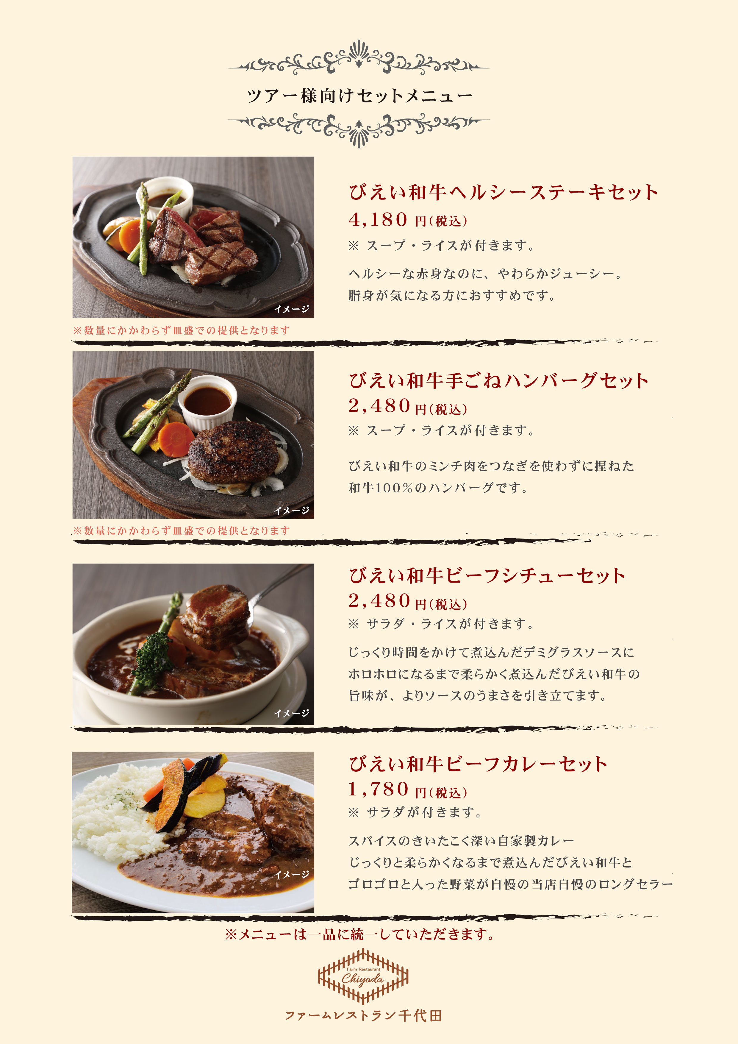 ファームレストラン千代田では団体様用のメニューを用意しています。